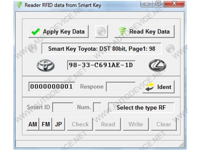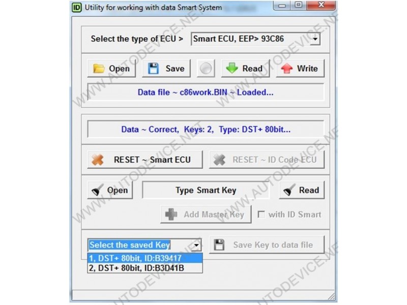 TK-Prog Master works with the keys chip ID: 94, D4, 98, 88, A8, 39, F1, 9F, 78.